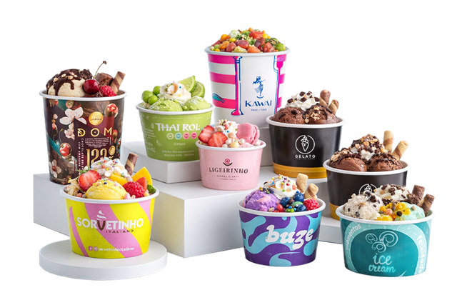 150, 240, 500 e 1000ml para sorvete, gelato, açaí e outros.