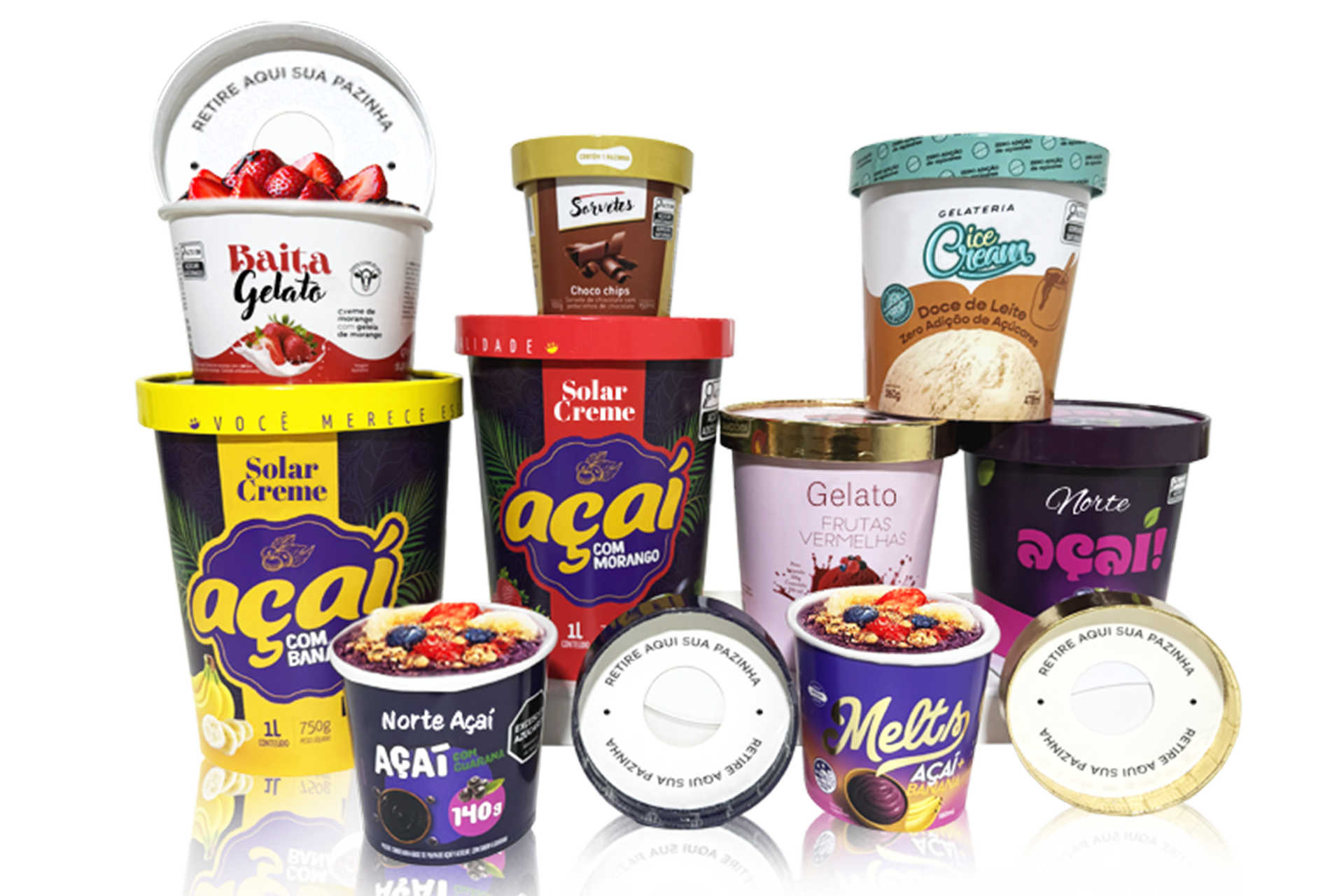 Opção de acoplar pazinha nas tampas de 150, 240 e 500ml
